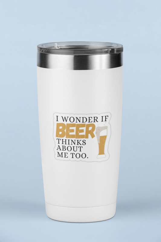I Wonder If Beer Thinks About Me Too - Breweriana/Beer Sticker